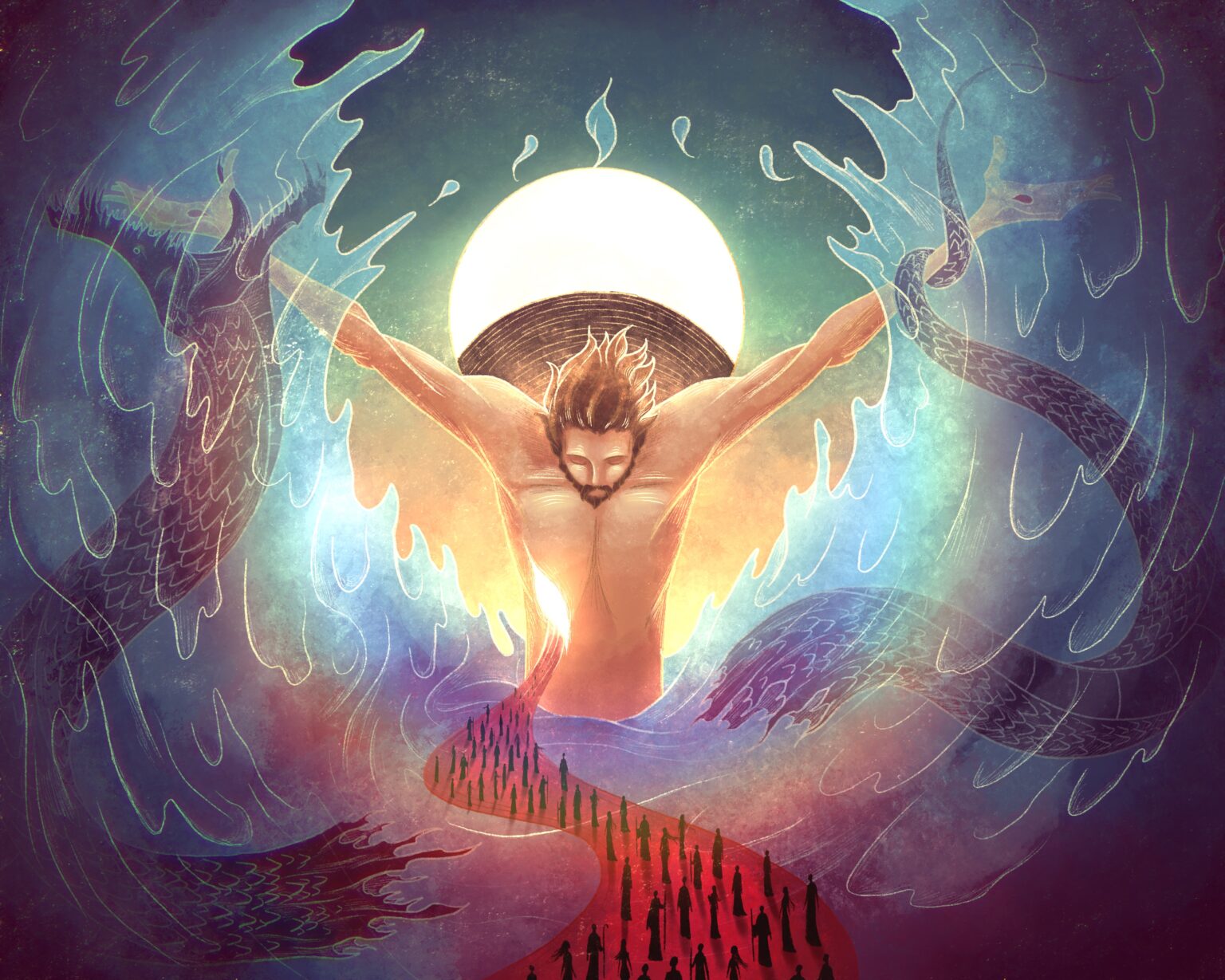 Does rend in twain that dragon-sea and hearts to hope does turn.